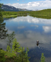 Kort bilfärd till ny plats och väl där insåg vi att fiskeplatserna var få, Jeanette, Granaten och jag slog följe till en av dem och Fluganberg och Esa testade platsen där Esa fick öring vid förra besöket.